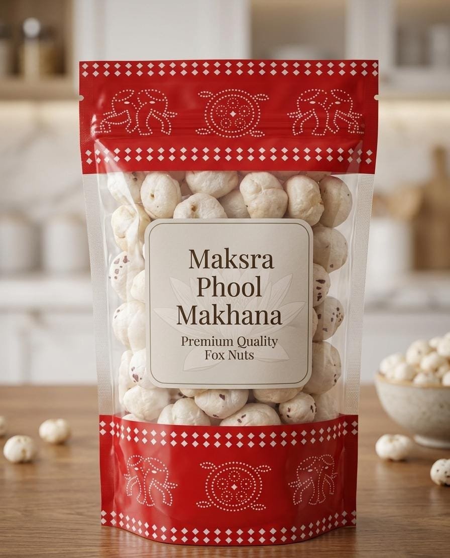 100% natural raw makhana, directly sourced from our farms in Mithila and hygienically packed to retain freshness and nutrition. Rich in protein and fiber, it’s perfect for roasting, cooking, and a healthy everyday diet.